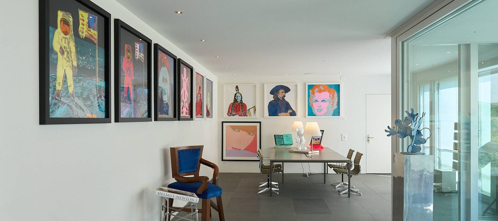 Im Inneren sind Sie von Meisterwerken weltbekannter Namen wie Warhol, Haring, Hockney, Indiana, Hirst und Koons und vielen weiteren internationalen Kunstikonen, Originalen und limitierten Editionen als Wertanlage umgeben. Draußen bilden Landschaft und Architektur eine Kulisse, die die Kunst noch weiter aufwertet. Der Marktwert von u. a. Pop Art ist in den letzten vier Jahren um nahezu 200 % gestiegen – ein Beweis dafür, dass das, was hier hängt, nicht nur visuell beeindruckend ist, sondern auch Bedeutung und nachhaltiges Wertsteigerungspotenzial birgt.